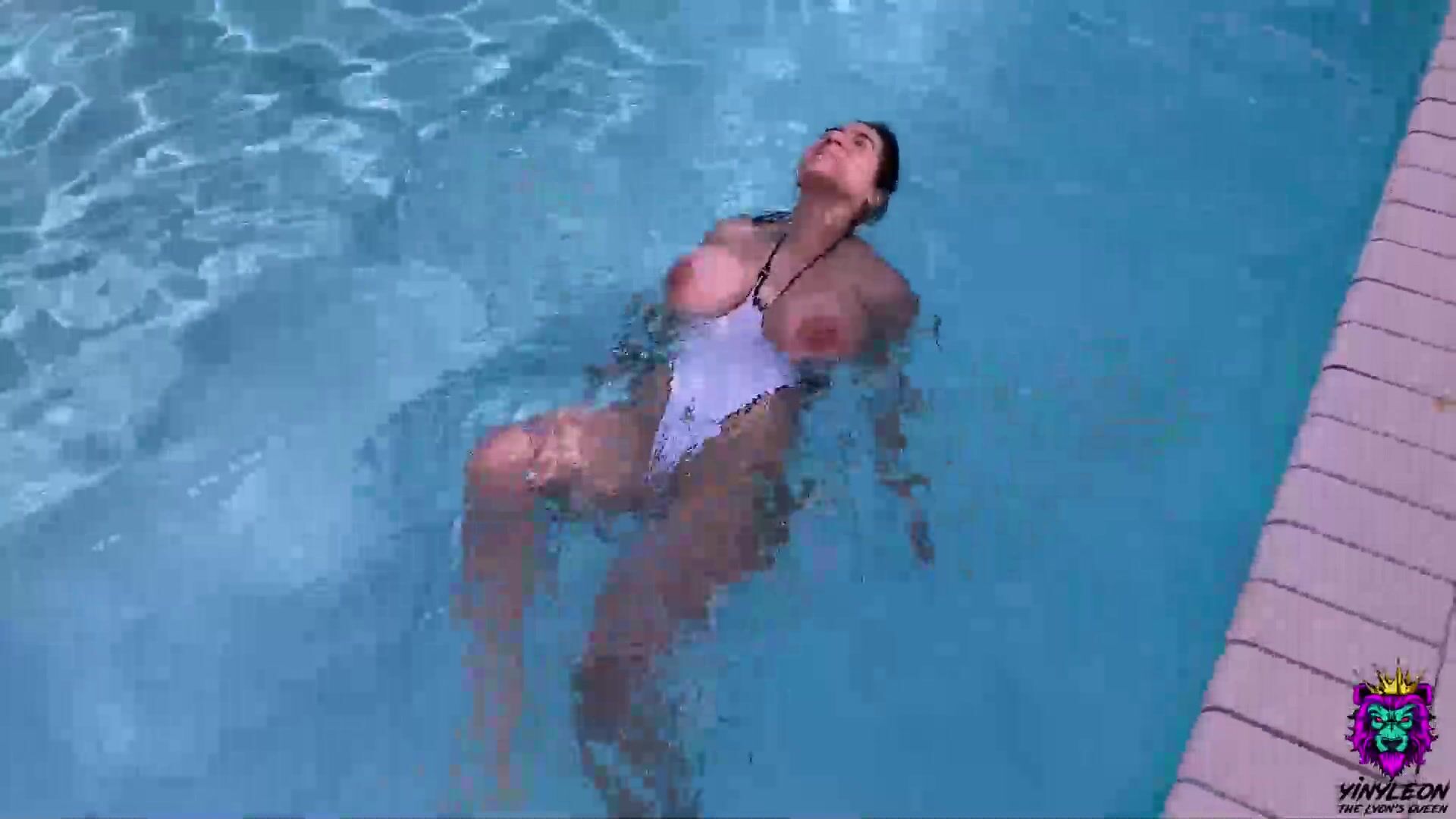 Big Tits Milf Ended Up Sucking Her Boss Dick In The Pool And Fucking Him In The Bathroom