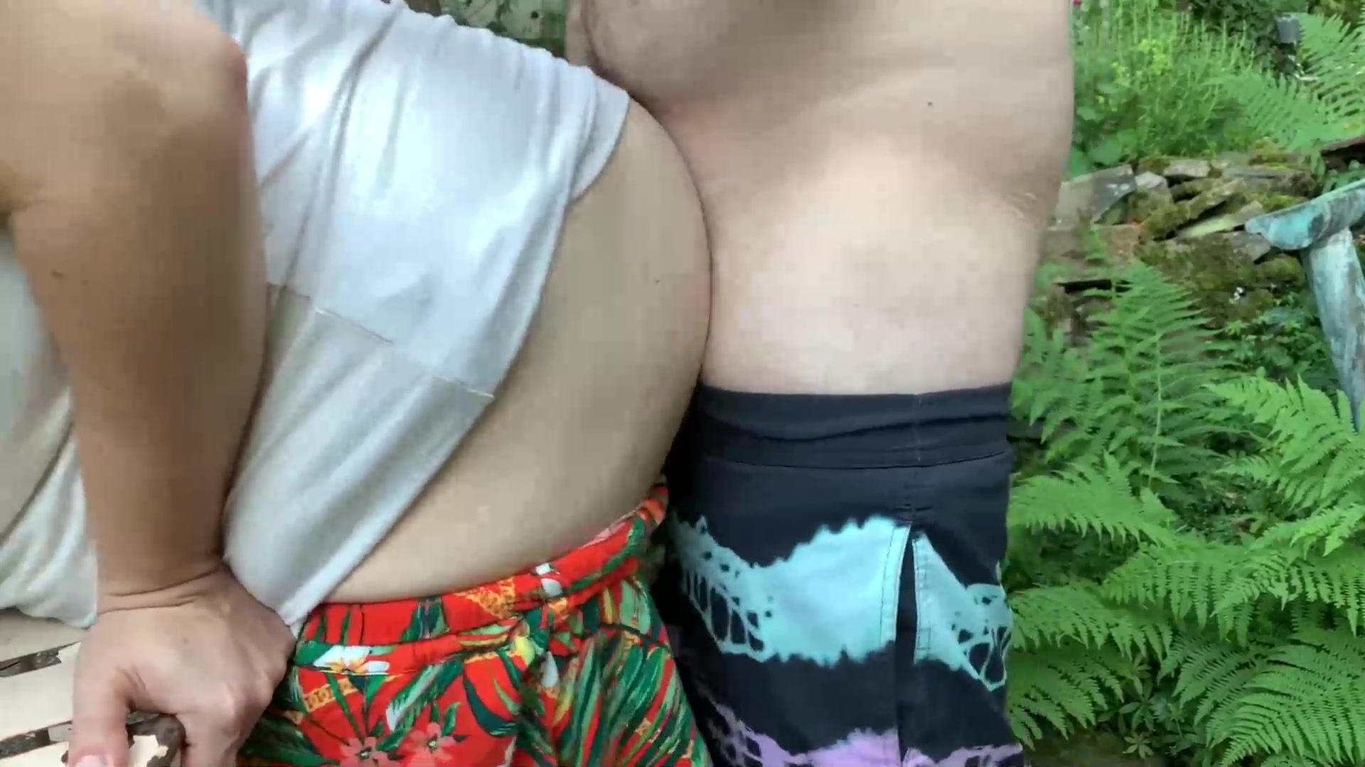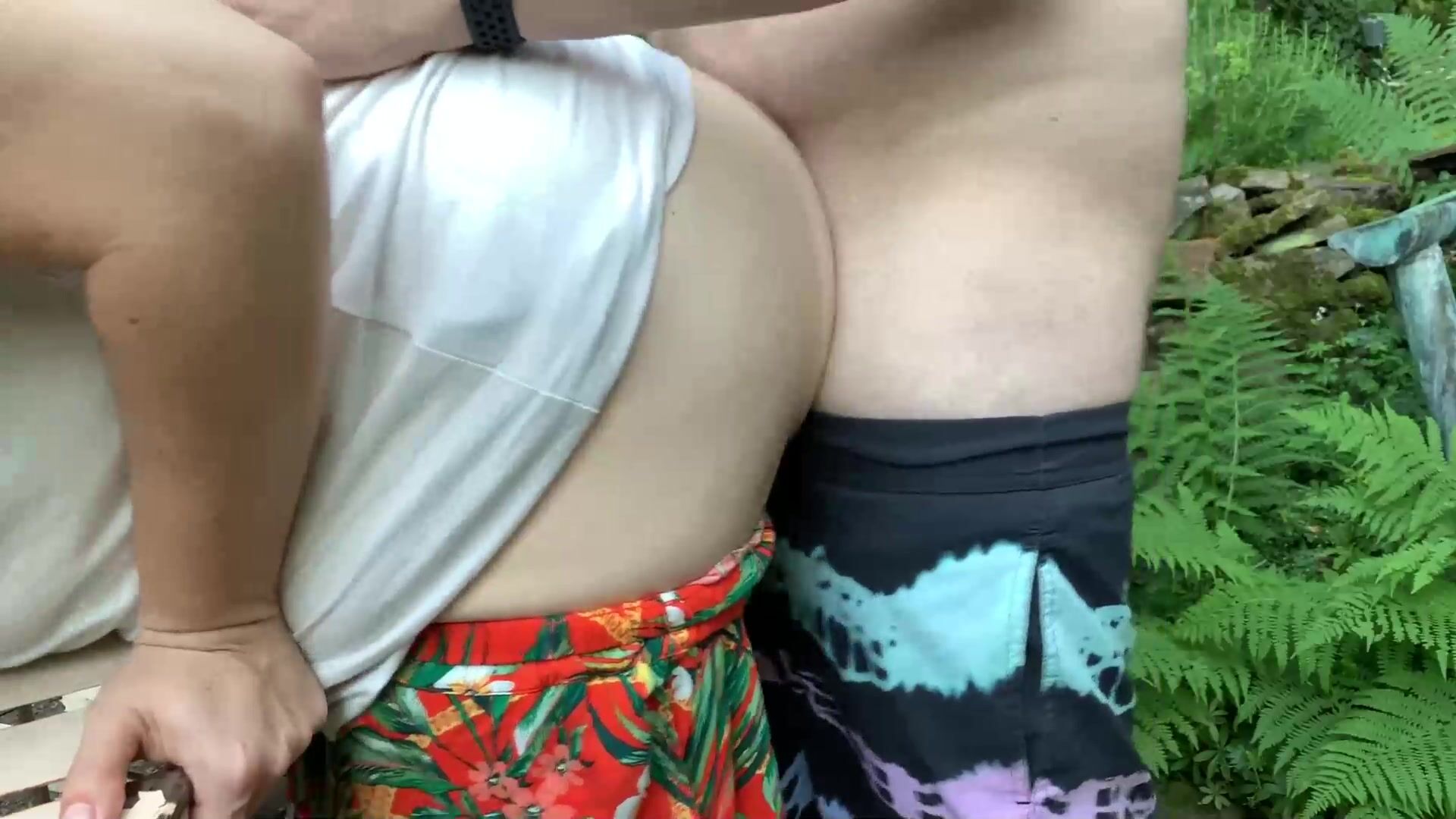Outdoor Quickie - Standing Doggystyle In The Garden