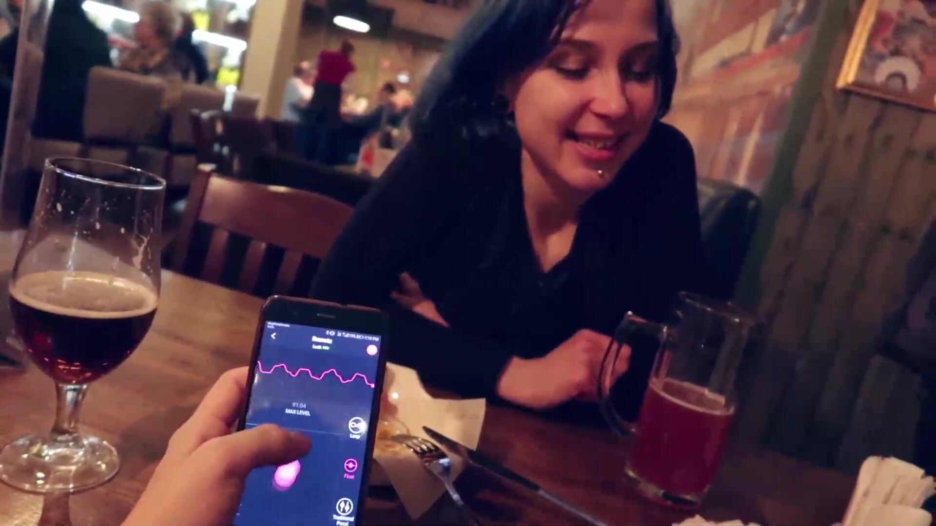I Took Control Of My Stepsister's Vibrator In The Bar And Brought Her To Orgasm.