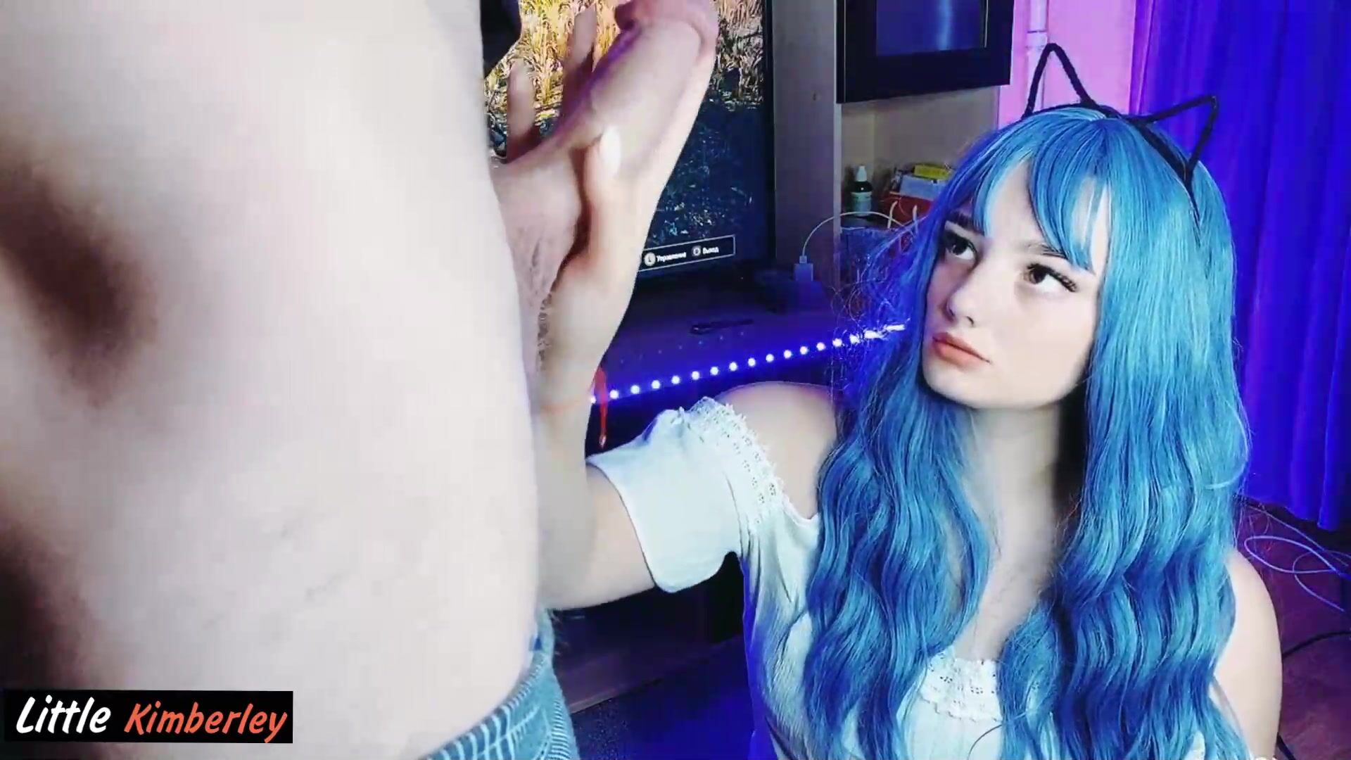 Prone Bone Fuck And Creampie For Cute Teen With Blue Hair
