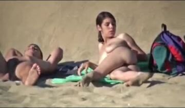 Nude Beach - Big Naturals Latino Teen Plays With Bf