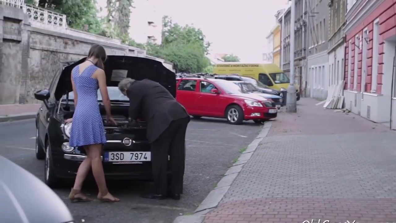 Sexy Czech Teenage Chick Having Romp With Elderly Guy For Helping With Her Camper